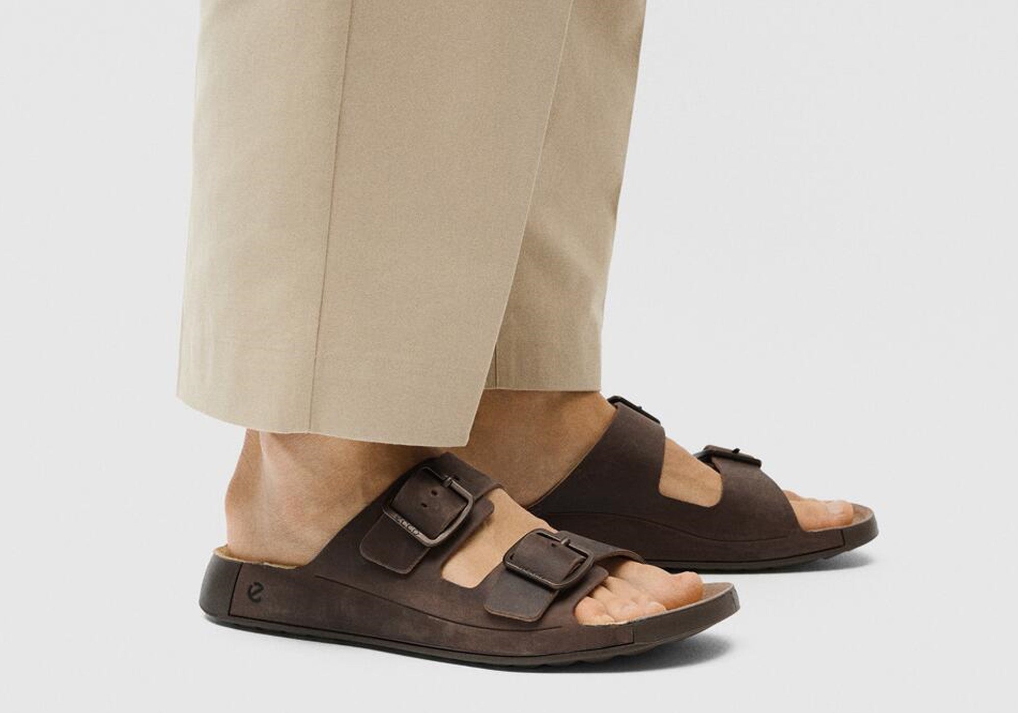 Experience refined comfort with the ECCO Cozmo men's slides, crafted from premium nubuck leather. Featuring a sleek slip-on design paired with an adjustable buckled closure, these sandals deliver a personalized fit and effortless style. Perfect for relaxed days, they combine sophistication with ease, making every step feel naturally comfortable.