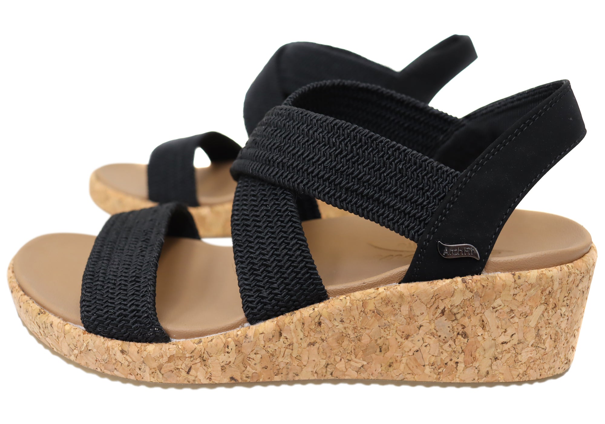 Love all day comfort for your feet with these stylish sandals by Skechers. These lovely wedge sandals features a stretchable woven upper with an Arch Fit footbed.